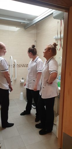From rolling patients to the correct use of the hoist, each student had the opportunity to perform a number of vital skills in front of the trainer and their classmates. While this took place tutors Anna Gacquin and Kathleen Noone recorded the students using the specialized equipment.