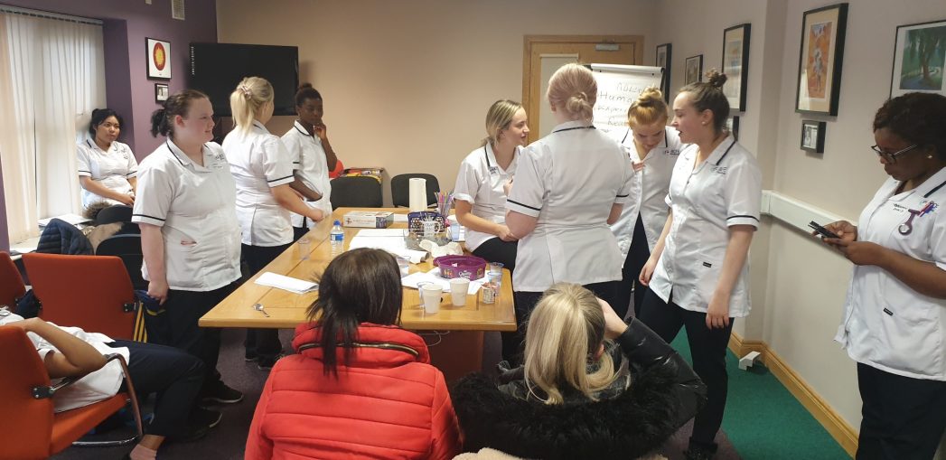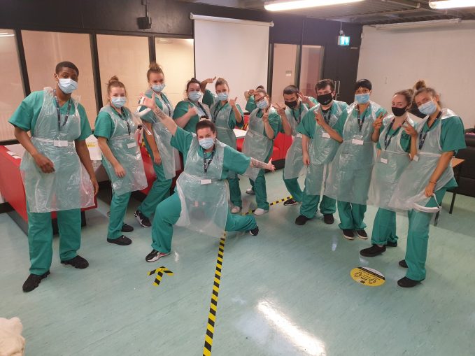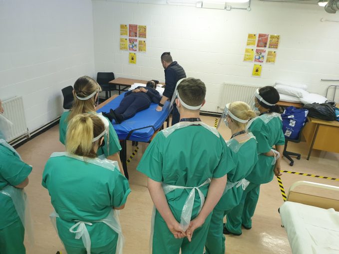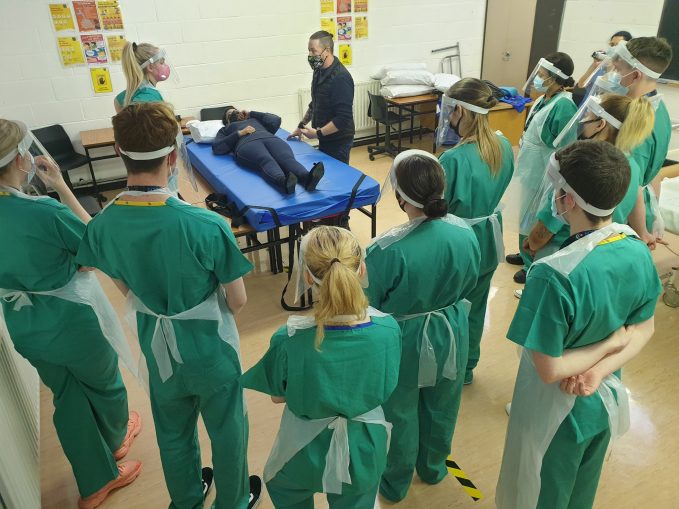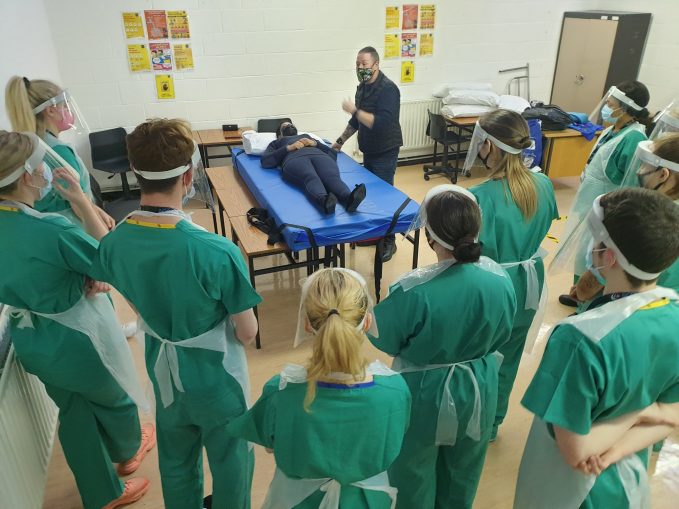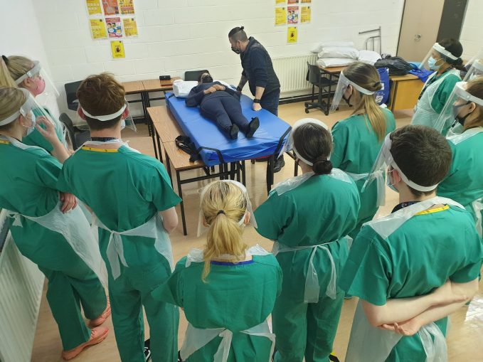 Over the past two weekends, BCFE’s Nursing and Specials Needs Students swapped their everyday clothes for nursing scrubs, gloves, visors and masks with which to participate in their yearly Patient Handling training. Safety was the number one priority as students worked with trainers from Muscular Dystrophy Ireland on basic patient handling skills.